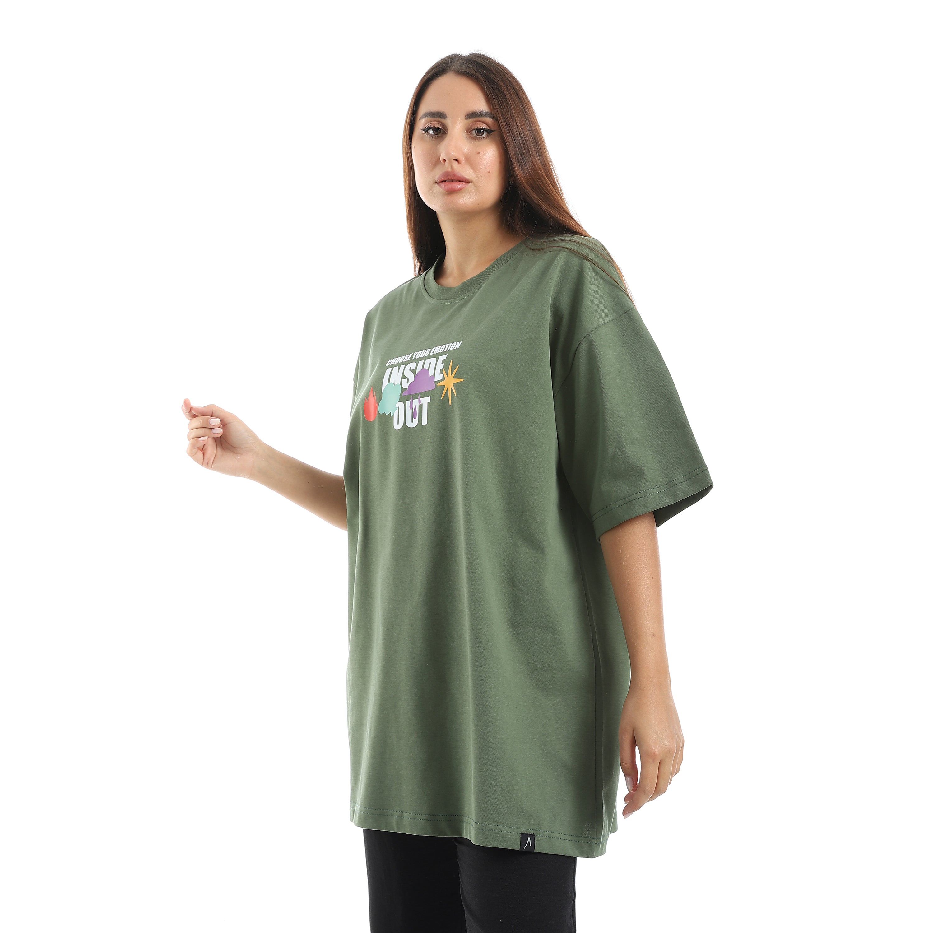 EMOTION SWITCH OVERSIZ T-SHIRT - OLV*GREN