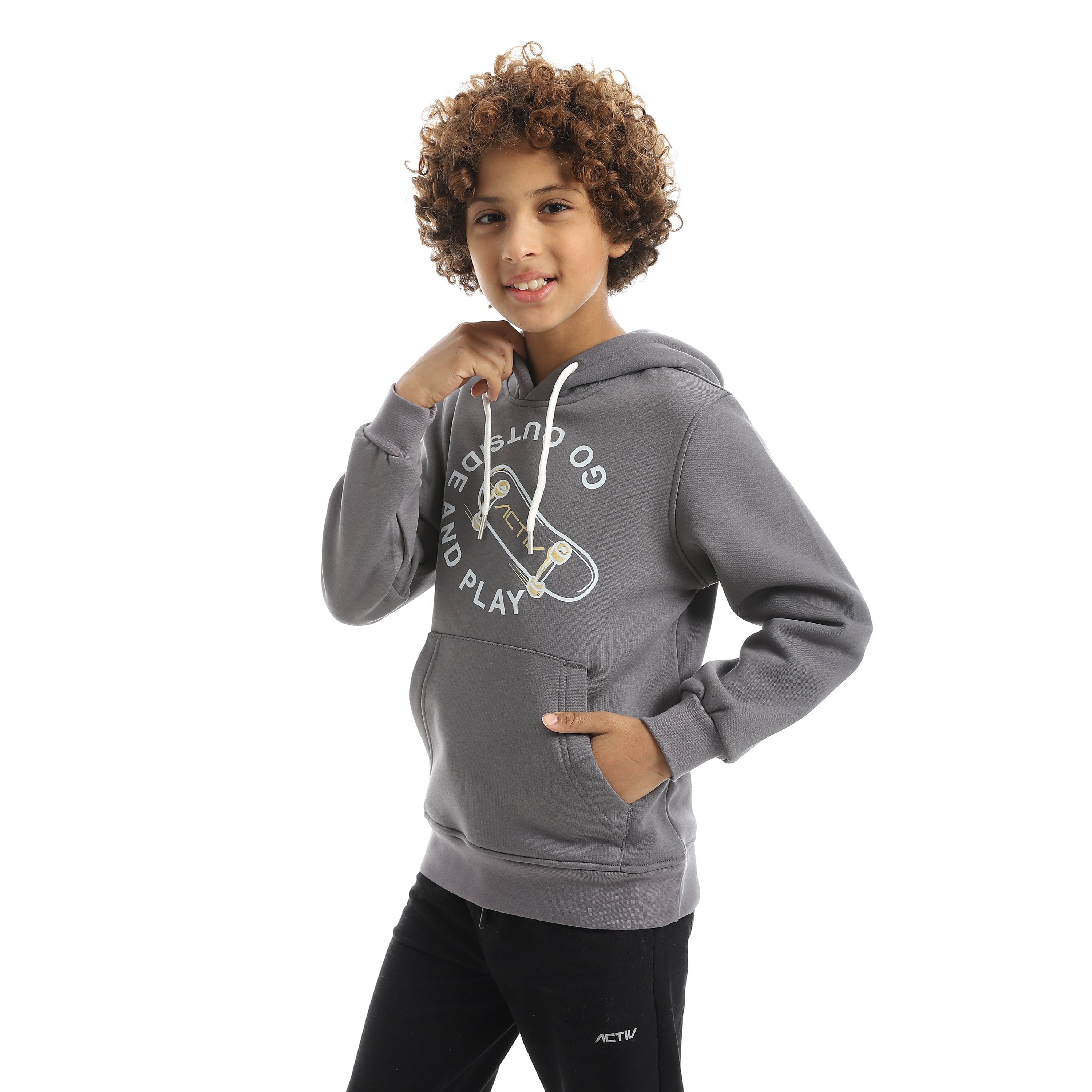 سويت شيرت اكتف اولادي بزنط - رمادي غامق
